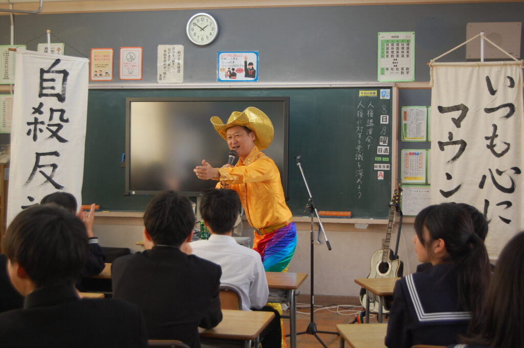 70分の間にギターの弾き語り曲を6曲交え、いじめ撲滅の思いを伝えていきました。