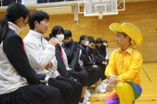 内容は城島先生との対談方式で、いじめ撲滅をパフォーマンスで訴え続けている思いや大切にしていることなどを学生たちに質問してもらったりしました。